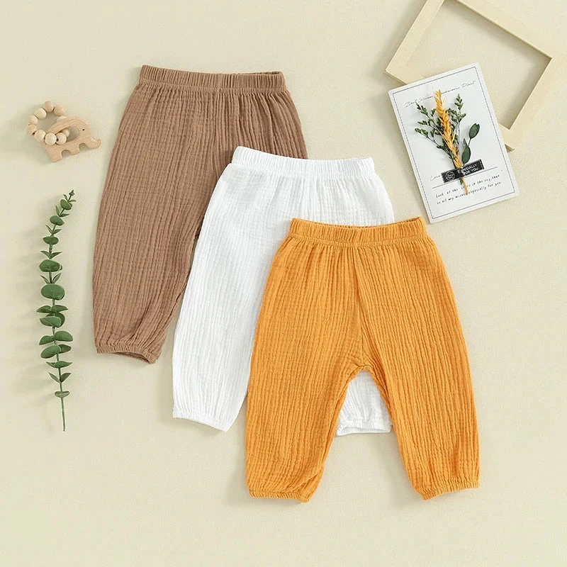 This is a 3-pack of solid elastic waist harem pants for baby and toddler boys and girls who need comfortable, stylish bottoms with room to move. Made from a soft cotton blend, each pair features a classic solid color with a trendy harem silhouette that allows plenty of space for crawling, walking, and playing. The elastic waistband ensures easy dressing and a secure fit. This value pack solves the challenge of keeping little ones stocked with versatile, roomy pants that are both cute and practical for everyday adventures.