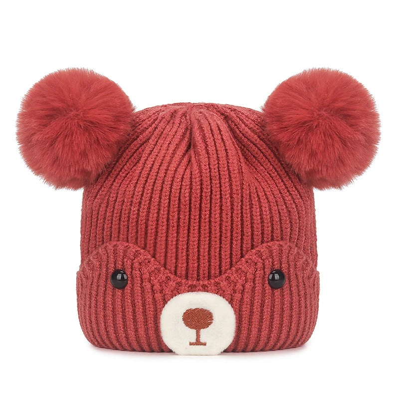 Style: Toddler knitted bear pom-pom beanie hat