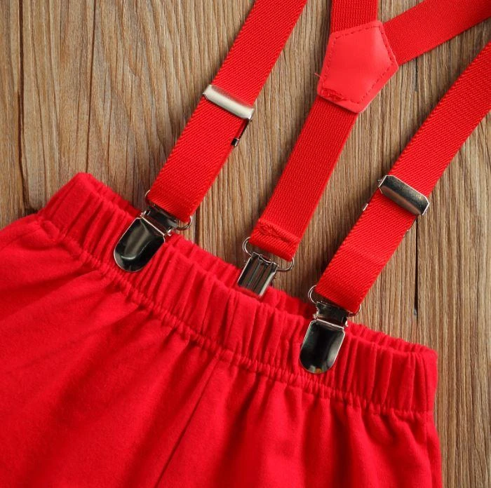 Complete 2-piece set – Includes bow tie onesie and matching suspender shorts for a perfectly coordinated formal look.