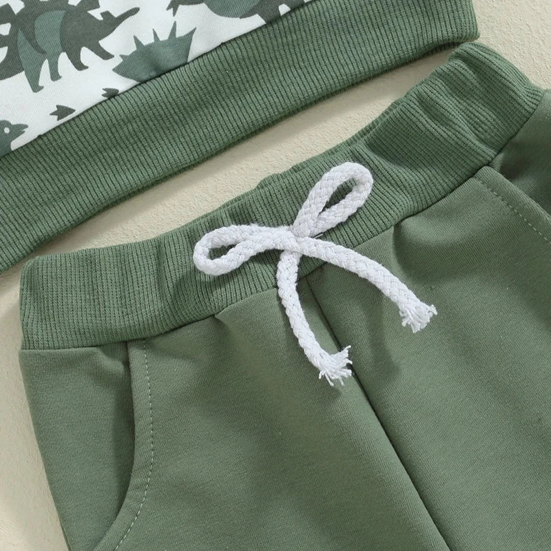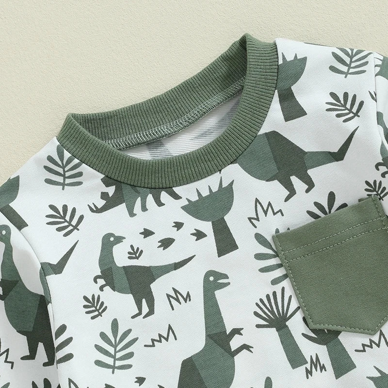 Complete 2-piece set – Includes matching dinosaur print top and pants for effortless coordination.