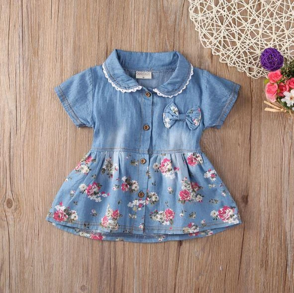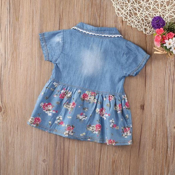 This is a short sleeve denim floral button-up dress for baby and toddler girls who love sweet, casual style with a touch of vintage charm. Made from a soft cotton blend, it features a beautiful floral pattern on classic denim, a flattering A-line silhouette, and a turn-down collar. The knee-length cut and button-up front make it easy to wear and perfect for warm-weather days. It solves the challenge of finding a dress that’s both stylish enough for outings and comfortable enough for everyday play.