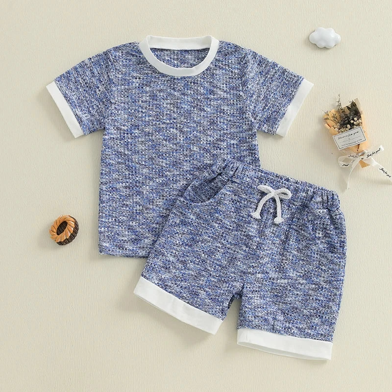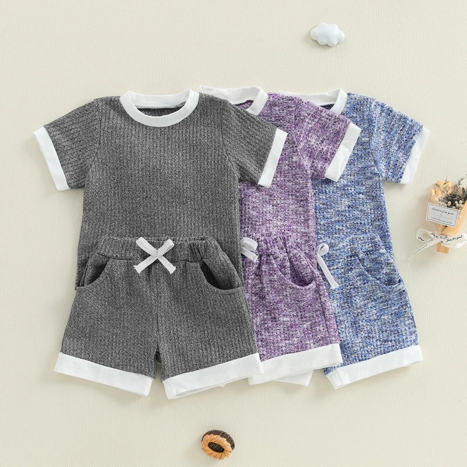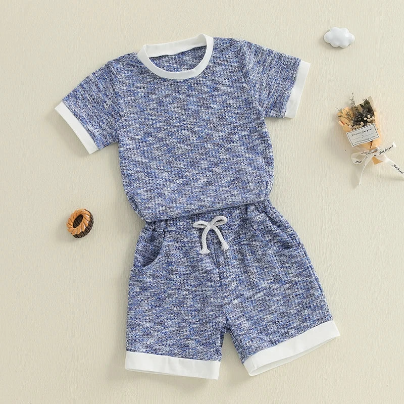 Style: Short-sleeve pixelate color T-shirt with matching shorts (2-piece outfit set)