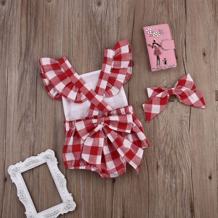 Style: Cute plaid ruffled romper for baby and toddler girls