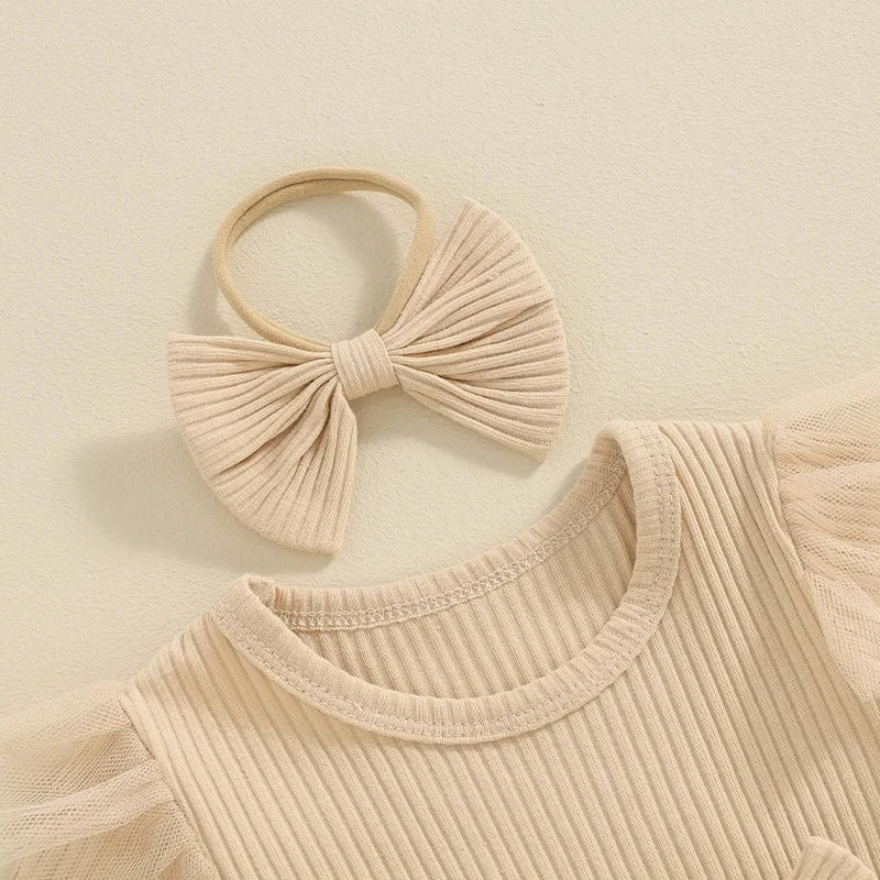 Style: Short sleeve ribbed bow dress with matching headband (2-piece set)
