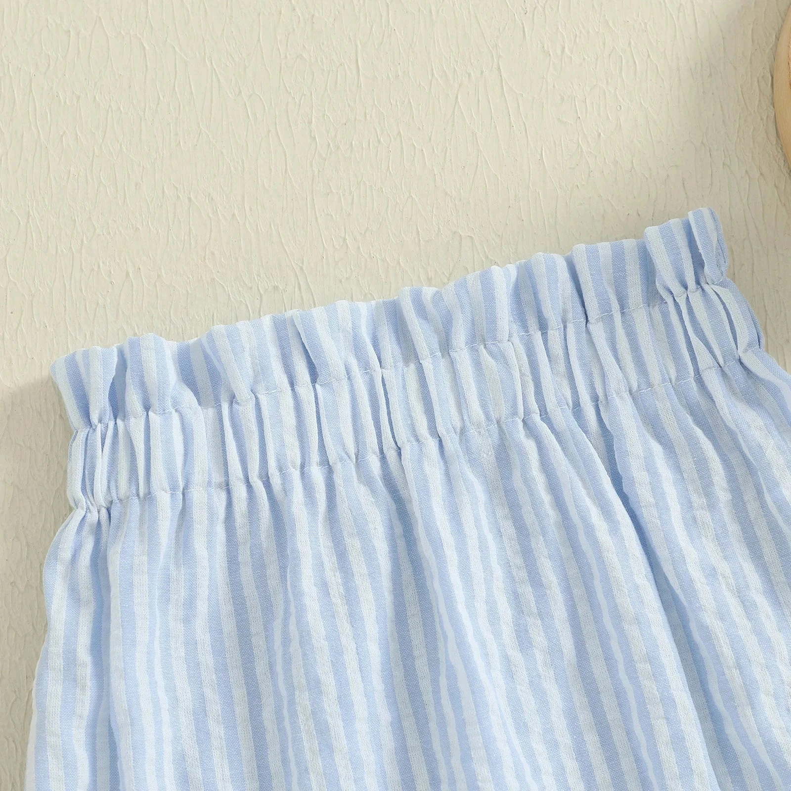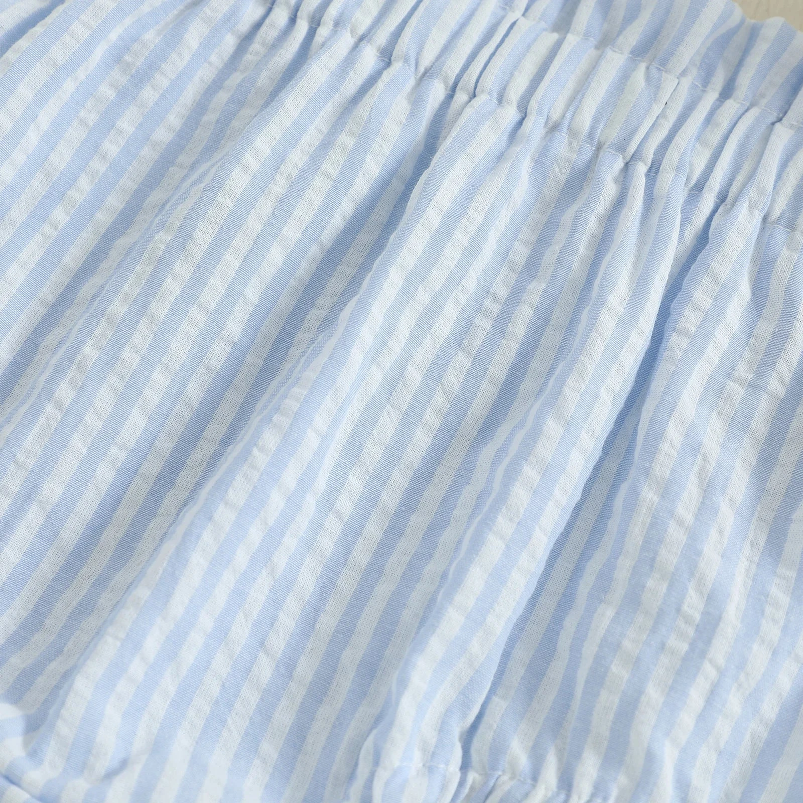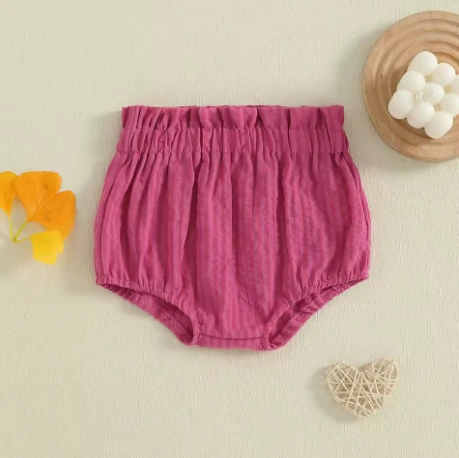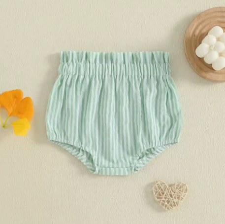 These are elastic waist striped bloomer shorts for baby and toddler boys and girls who need soft, comfy bottoms for everyday play. Made from a cotton-polyester blend, they feature a classic striped pattern and easy pull-on style. They solve the challenge of finding unisex shorts that are both adorable and practical for warm weather.