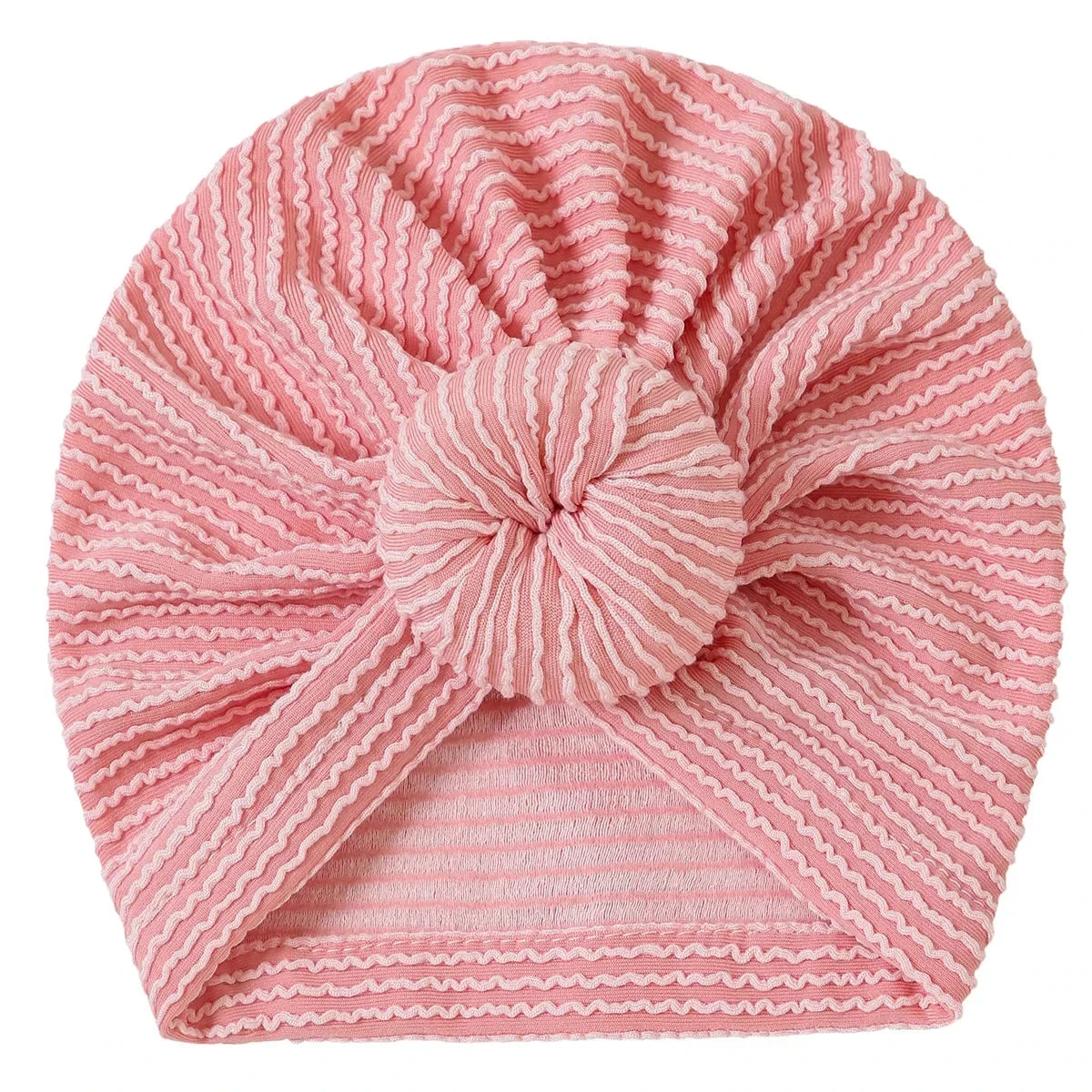 This is an adorable striped turban knot beanie hat for baby girls ages 0-12 months who need a stylish, cozy accessory for cooler weather. Made from a soft cotton blend, it features a classic striped pattern with a trendy turban knot detail that adds a fashionable touch. Perfect for keeping little heads warm while looking absolutely precious, it solves the challenge of finding a hat that’s both functional enough for cold days and stylish enough for everyday wear.