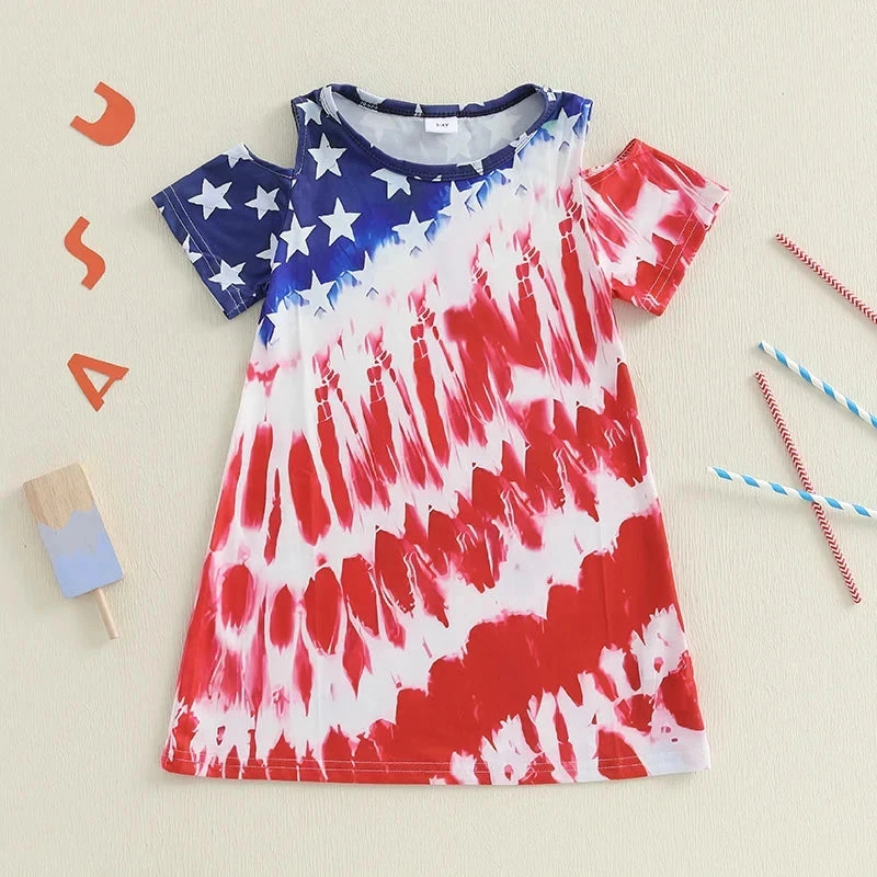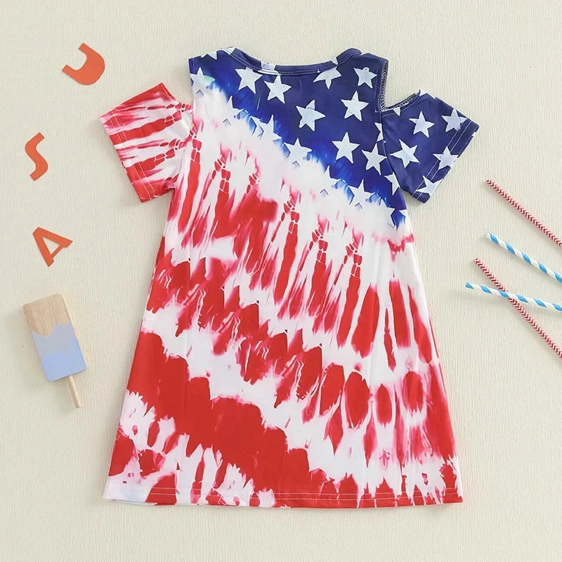 Style: Shoulder cut-out tie-dye stars USA 4th of July dress